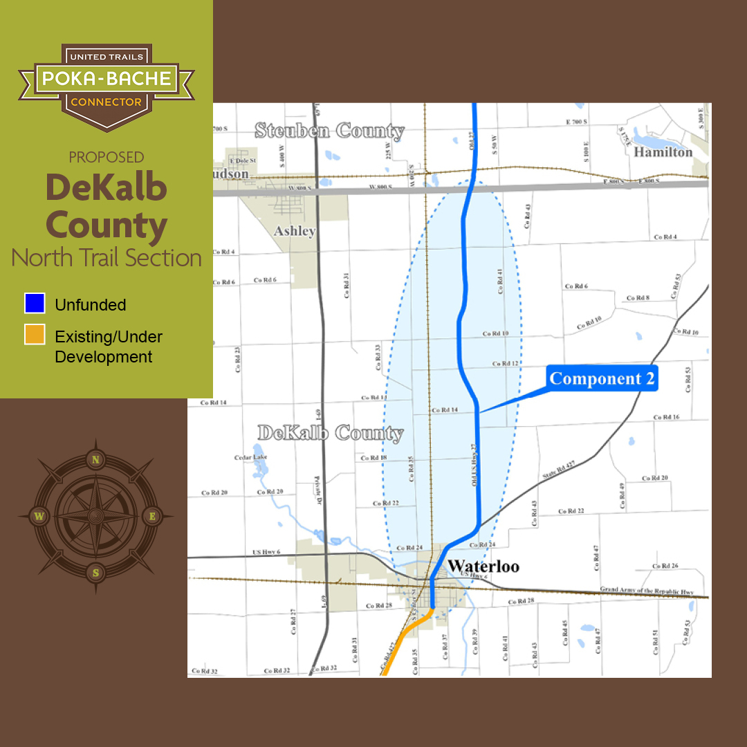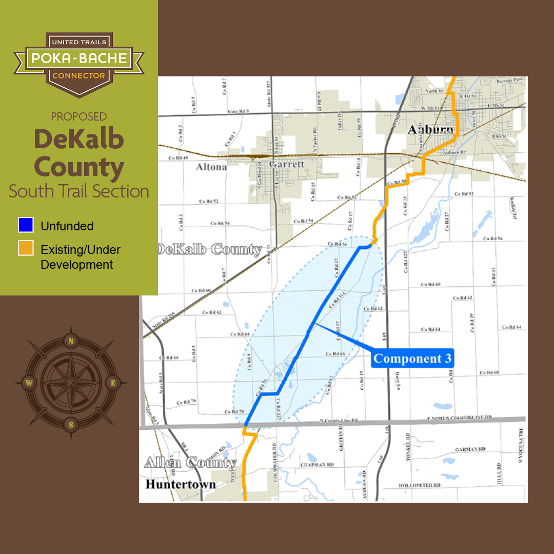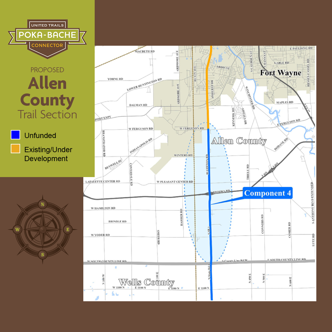 We started construction in August, 2025 on the 1.7 mile long section of the Poka-Bache Connector in Fort Wayne from the intersection of Lima Road and Ice Way to Washington Center Road. This segment of the Poka-Bache is called the “Pufferbelly Trail.” The Pufferbelly Trail will be over 13 miles long when it’s completed from downtown Fort Wayne to the DeKalb County Line. Much of this 13-mile long trail is constructed on the former New York Central Railroad corridor or Fort Wayne and Jackson Railroad corridor. Pufferbelly is a nickname for steam locomotives.