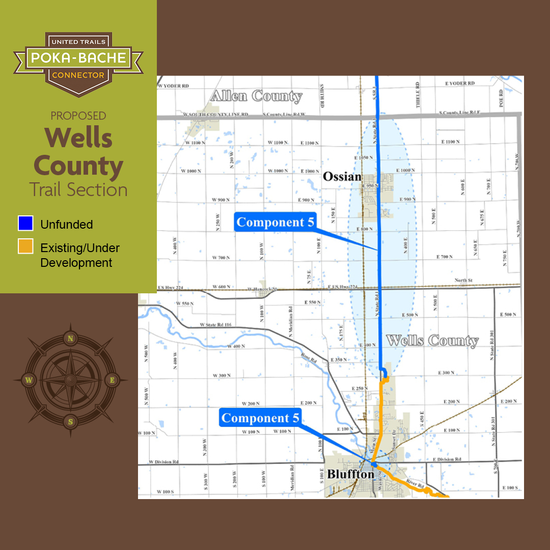 We call this 1.7 mile long phase of the Pufferbelly/Poka-Bache “The Golden Spike,” because when it’s finished it will connect 130 miles of existing trails in Fort Wayne and Allen County. We have a pedestrian bridge, called the Vann Family Crossing, that will be constructed in 2026 for the crossing of Coliseum Boulevard. Jim Vann’s family foundation gifted the City of Fort Wayne $5 million for this $7.6 million pedestrian bridge. Former Governor Eric Holcomb and the Indiana Department of Natural Resources provided a nearly $2.7 million Next Level Trails Grant and Fort Wayne Trails, Inc. raised $300,000 from donors for the construction of the trail.